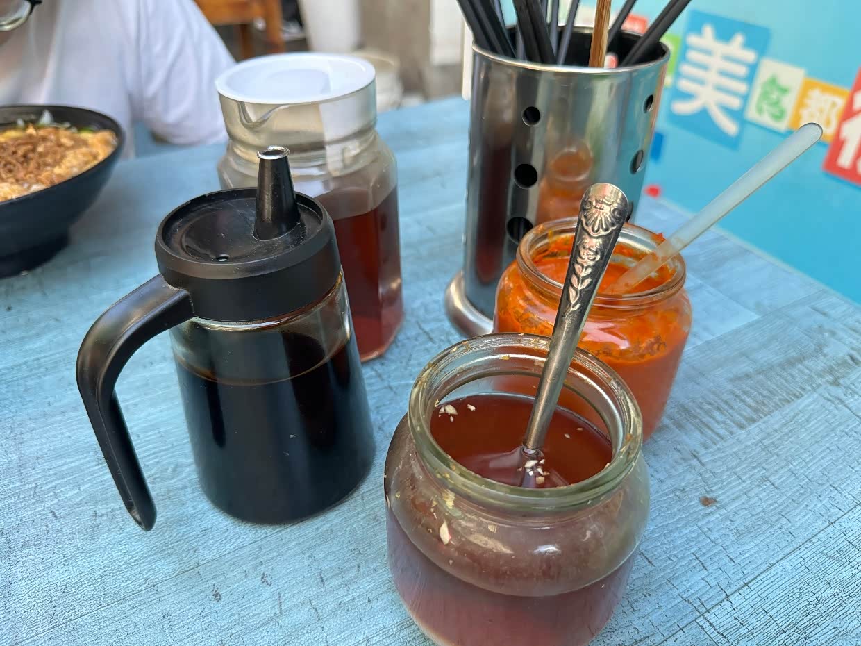 加上蒜味的醋和辣椒糊,可以提升这碗粉的味道。