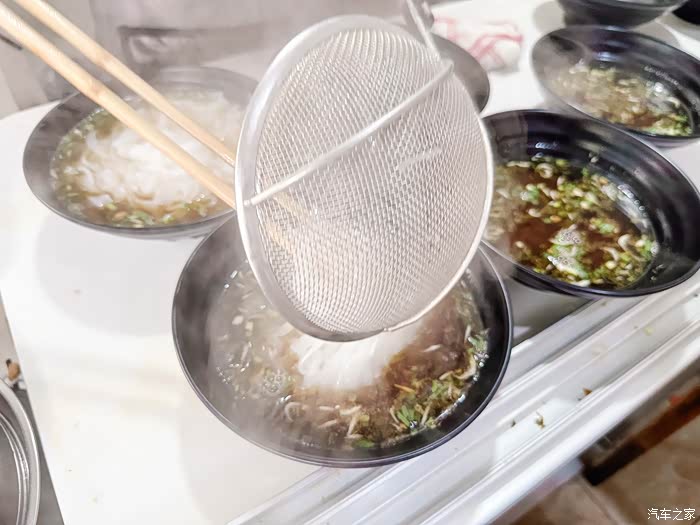 热气腾腾的粉皮放入汤汁,这一碗粉大功告成。