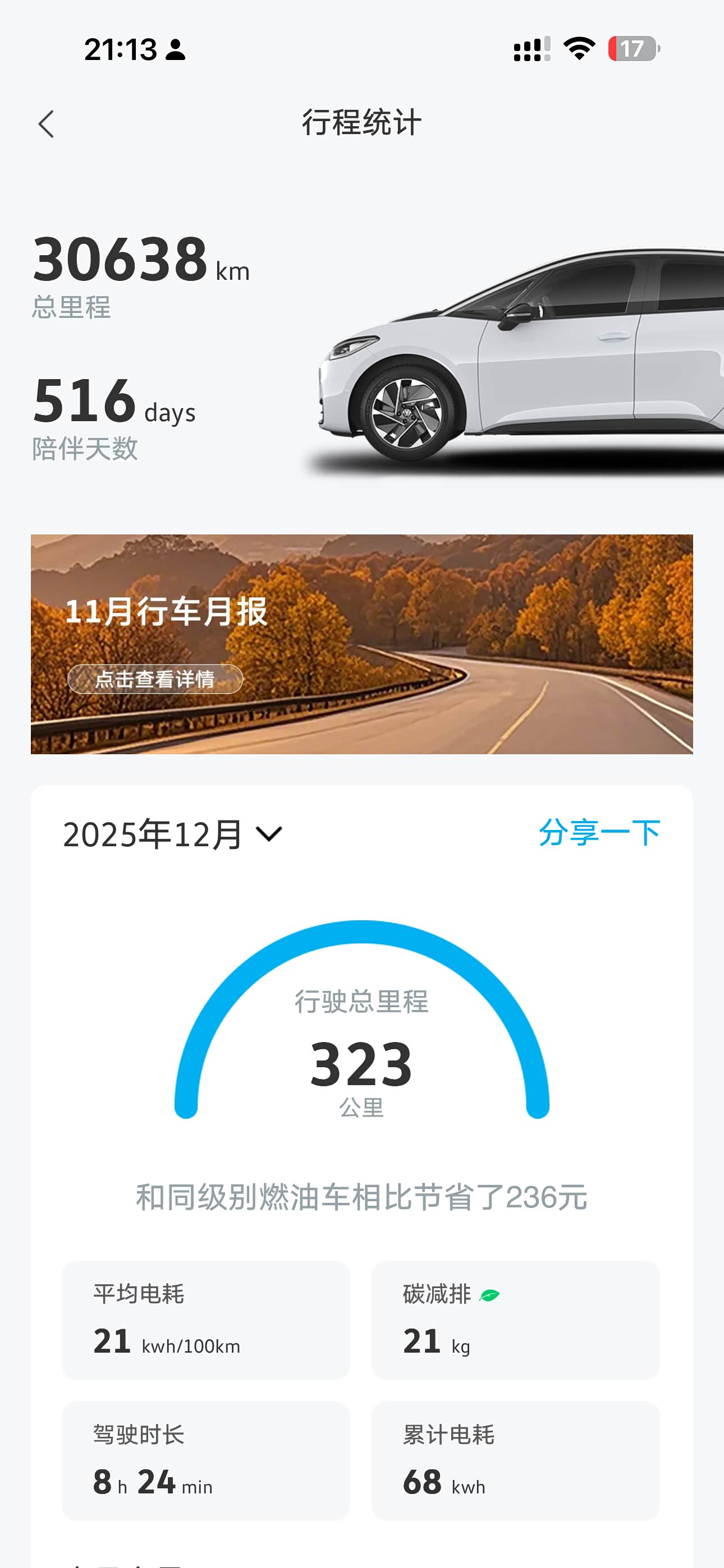 冬季: 这是所有电车的“软肋”,ID.3也不例外。冬天,开暖风,电耗会飙升到16-18甚至更高,续航大概打六到七折,能跑个250-280公里左右。所以冬天跑长途得规划一下。