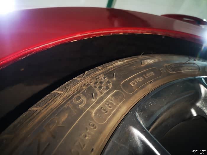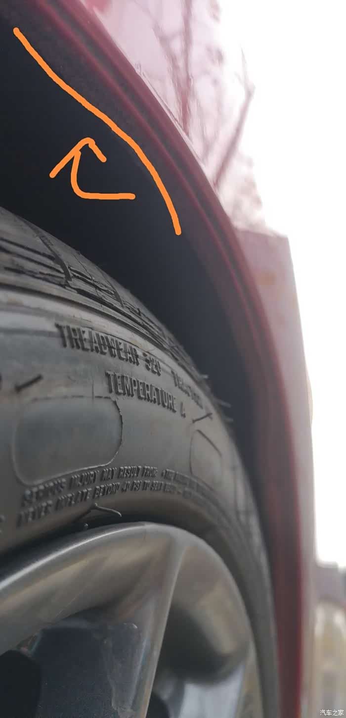 由于轮毂从原厂7.5j换到8.5j et35时和改轮胎尺寸225换到245时没有考虑到未来会有上绞牙,绞牙上身后,出现了一侧轮胎剐蹭翼子板内侧的问题。