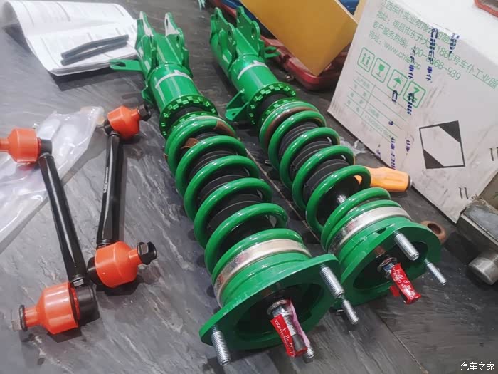 去年完成了轮毂和卡钳,今年在原厂避震已经出现咔吱咔吱声音后,终于出手绞牙避震。