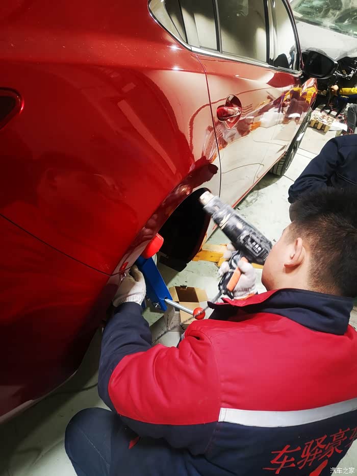 感谢一位遇到完全同样问题的车友提供的方案,自己去买了个专用卷翼子板神器,辗转找到愿意出手的师傅,不过钣金师傅试了下心里有谱后,还是改用了自己的橡胶榔头,更速度的搞定