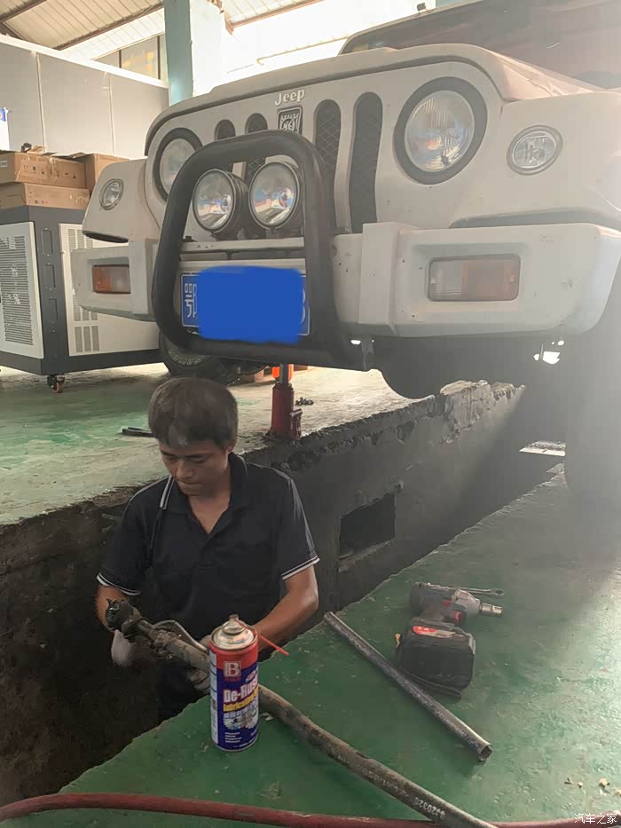 第二天我们对这台北汽战旗进行了详细的检查,因为杰哥是修车师傅,首先检查了发动机,确认发动机无漏油,无进水,无高温,无烧机油,无拆修,无故障码以后。又用举升机将战旗举起,主要检查了变速器,分动器,前后传动轴,盆角齿间隙,轮毂轴承,刹车管路和刹车分泵,油箱以及供油管路,还有最重要的四驱高低速系统。确认车辆无故障后就交了车主一半的车款,过户成功后付全款。