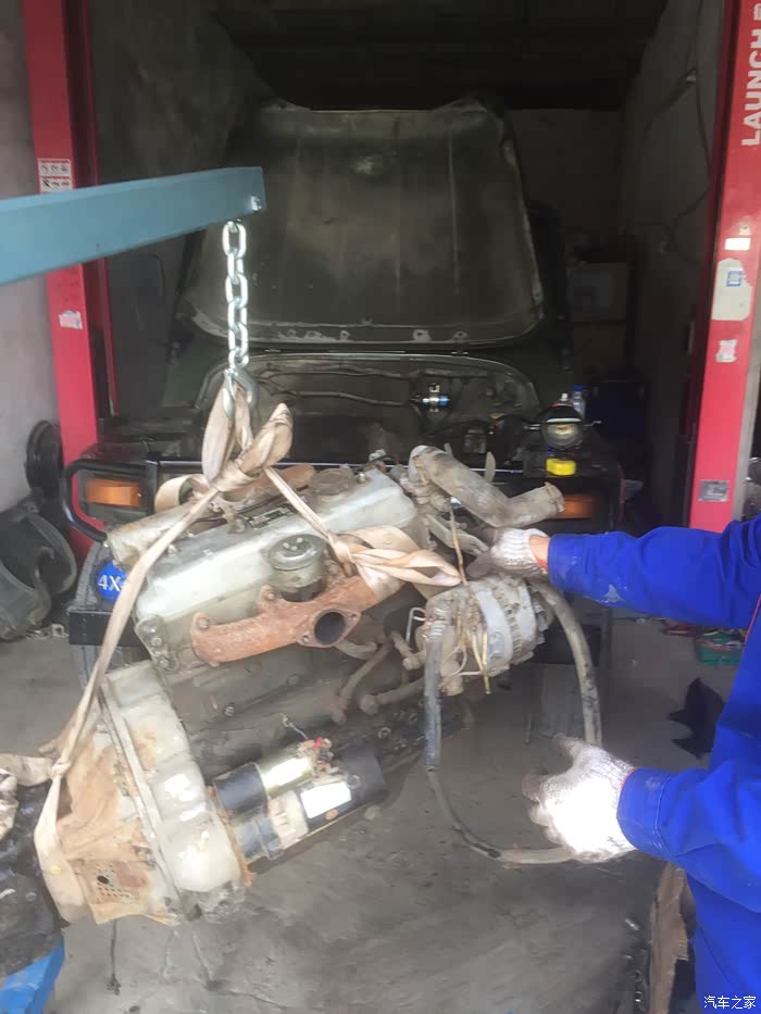 当即准备付钱拆下发动机,可是老头这下不干了,非要再加200元,说这是个精品柴油机。按废铁价是600元,但是发动机是好的就得按精品发动机卖,最低也要800元,他说要是拆下卖到车行怎么也得1200元。我们自己来拆就800元。我想反正800买个柴油机也不贵,付了钱就拆下了轻卡上的扬柴485柴油机。老头用叉车帮我们吊下发动机吊到了我们的皮卡车后面,直接回家。