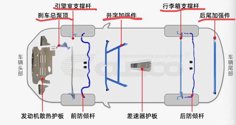 于是抱着试一试的心态,我把cusco全套加强件都给上了。前后顶把、前井字架后备箱加强、顺便也上了鸡肋的刹车顶。