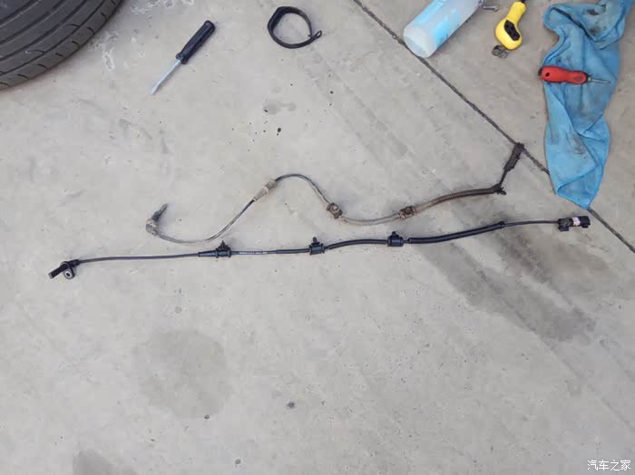 找到线束,这里注意??右边有个挡泥板,需要把挡泥板拆开,拆那些卡扣时注意技巧,先拆中间的卡扣然后整体卡扣拉出。左边的好像没有挡泥板,下了轮子直接拆线。