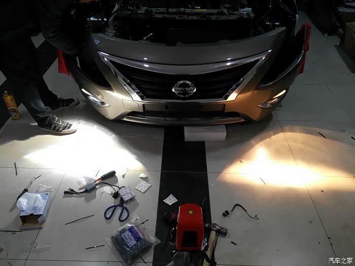我不是商家 。 家里的车陆续的改过几次大灯,还有周边亲友的车也改过几台,多少了解一些 。 阳光我改的氙气,国产海拉透镜,汉雷5500K灯泡,奥迪拆车华科安定器 ; 雾灯上的氙气灯。17年新车提回来, 改的大灯 ,换了一对蜗牛喇叭; 加装了水箱防虫网 。 内饰灯换的 LED 还有LED倒车灯