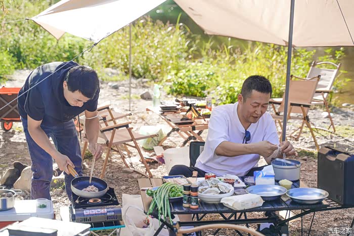 因为不太会做饭,所以我每次露营都是包揽搭营地支帐篷布置锅碗瓢盆的工作,吃完再负责洗碗收拾