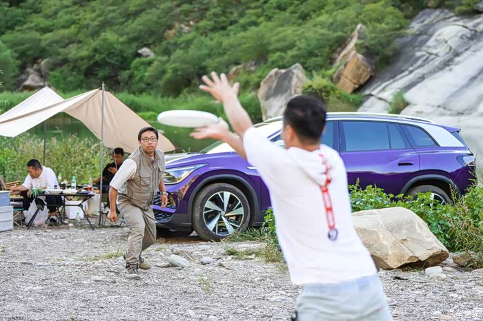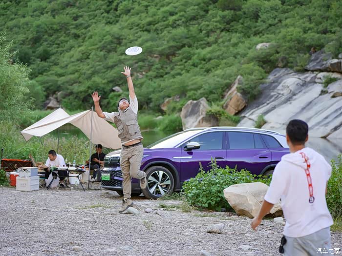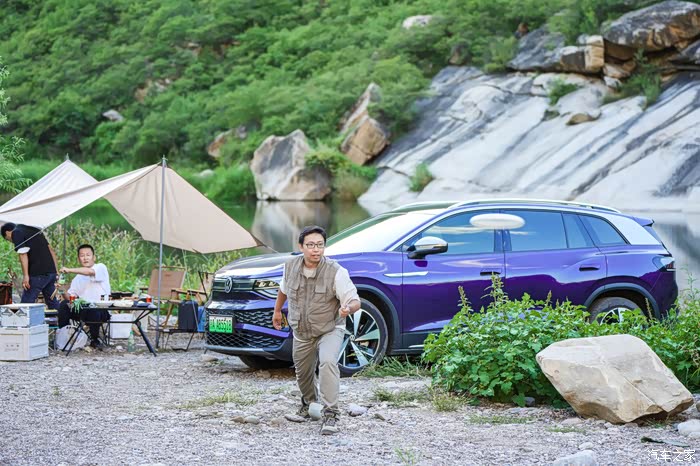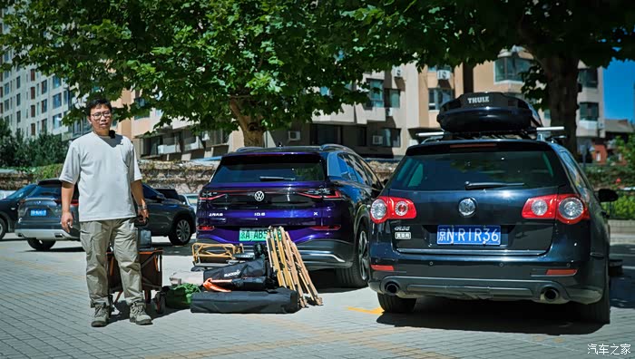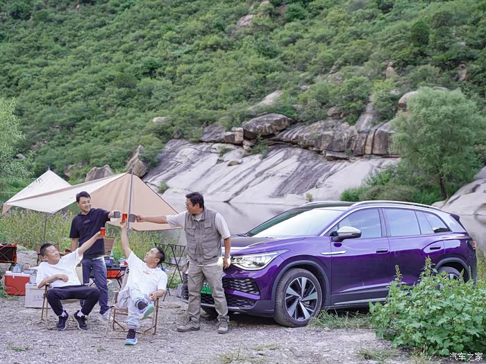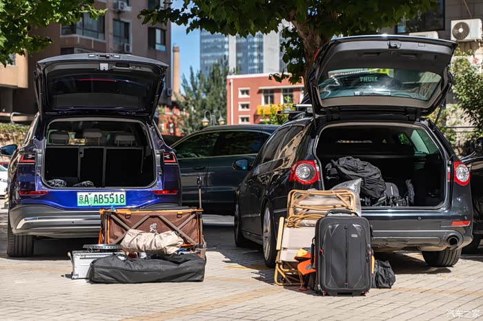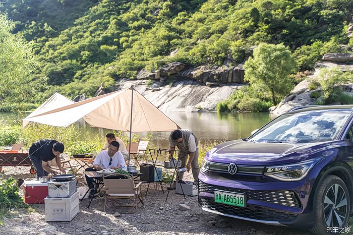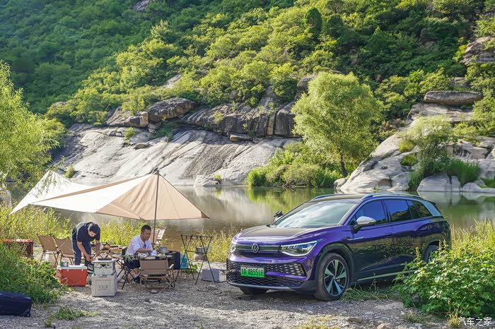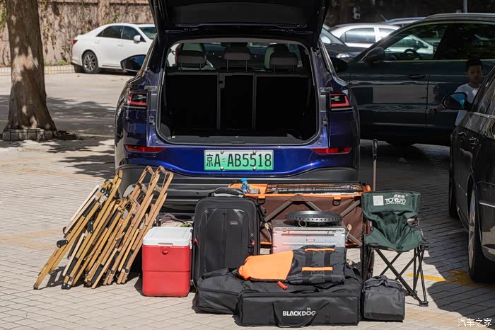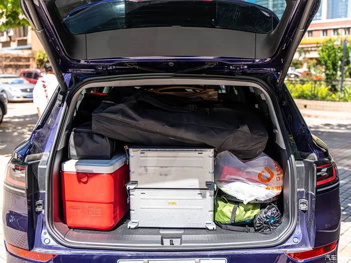 现在的露营,和我们以前爬雪山只背一个背包的超轻量化装备相比,真是大不一样了。桌子椅子天幕烤炉甚至咖啡机都得往车上搬,这还是比较初级的。所以,车子的承载能力肯定是最重要的。上汽大众ID.6 X作为一款中大型7座SUV,把后排座椅放倒之后空间超大,简直可以去跑货拉拉了