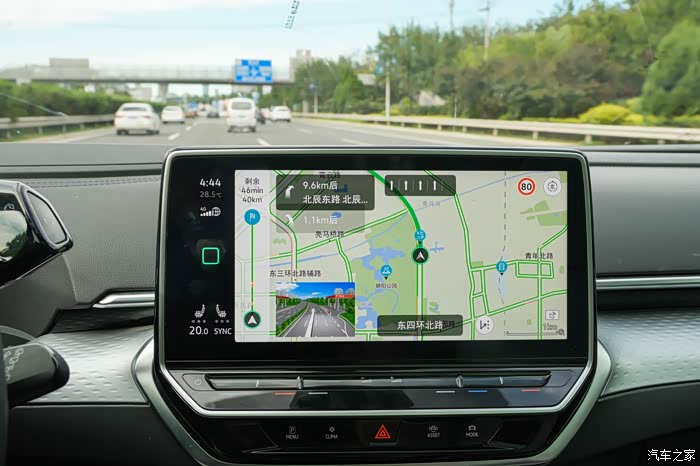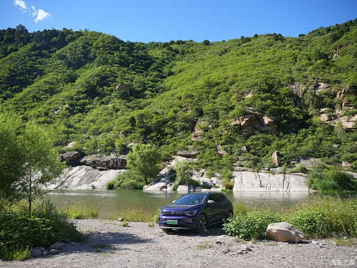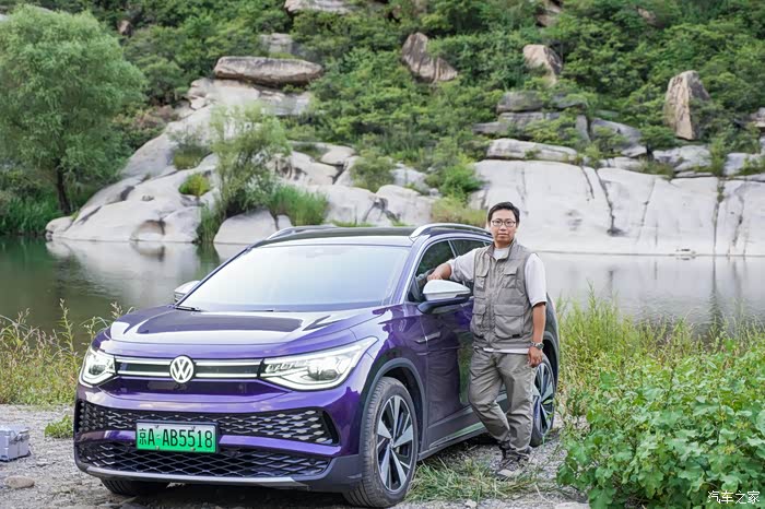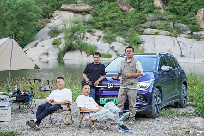 准备就绪,哥儿几个上车出发。踩下刹车踏板,系好安全带、轻轻扳动档杆,就可以进入驾驶模式了。说一声“你好大众”就会激活语音助理,然后说出导航到白河湾生态艺术营地就可以自动开启车内的导航系统了。导航显示单程接近80公里,包含了高速路段和山路国道,对于这样一台CLTC达到600多KM的车来说,是非常轻松的。