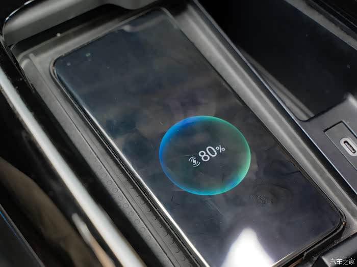 智能手机的时代,随时保持在线就很重要。车内前排设置了无线充电板和两个Type-C接口,下方还有一个储物空间,可以存放一些小的随身物品。