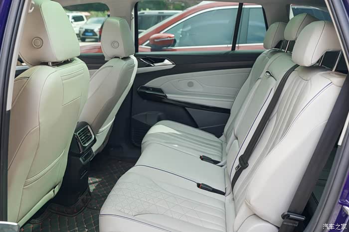 来到第二排,纯电平台带来的好处就是中间不再有地台凸起,坐在中间乘客的腿想必会舒服很多。
