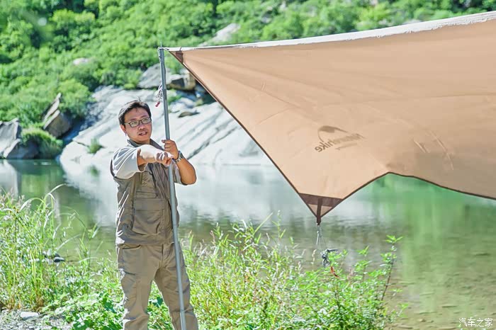 好了,这是我唯一能做的事情,就是帮大家把摊子支起来。河边的地面有点硬,以岩石巨多,下地钉很费力,不过依然无法难住多年行走在外的老司机们。
