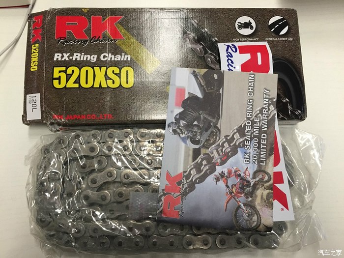 加大牙盘会导致原厂链条过短,所以链条也换成了RK的。
