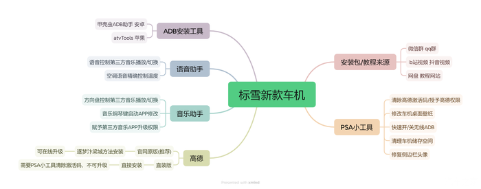 经过一两年的发展和各位车友的努力,22款408的车机扩展生态已经比较完善了,其中大部分软件24款应该也可以使用,故在此处放出思维导图,方便各位评估自己的需求后快速找到相应的教程/软件。