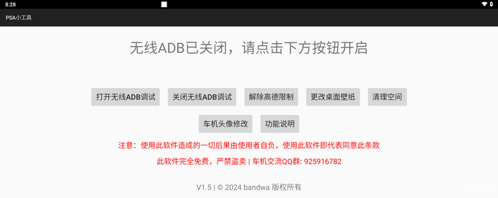 强烈建议安装PSA小工具,可以快速开启/关闭无线ADB,不用每次都输入密码了。