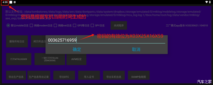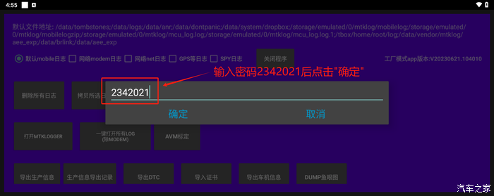 进入工厂菜单后先输入第一层密码,固定为2342021,然后点击“确定”按钮。