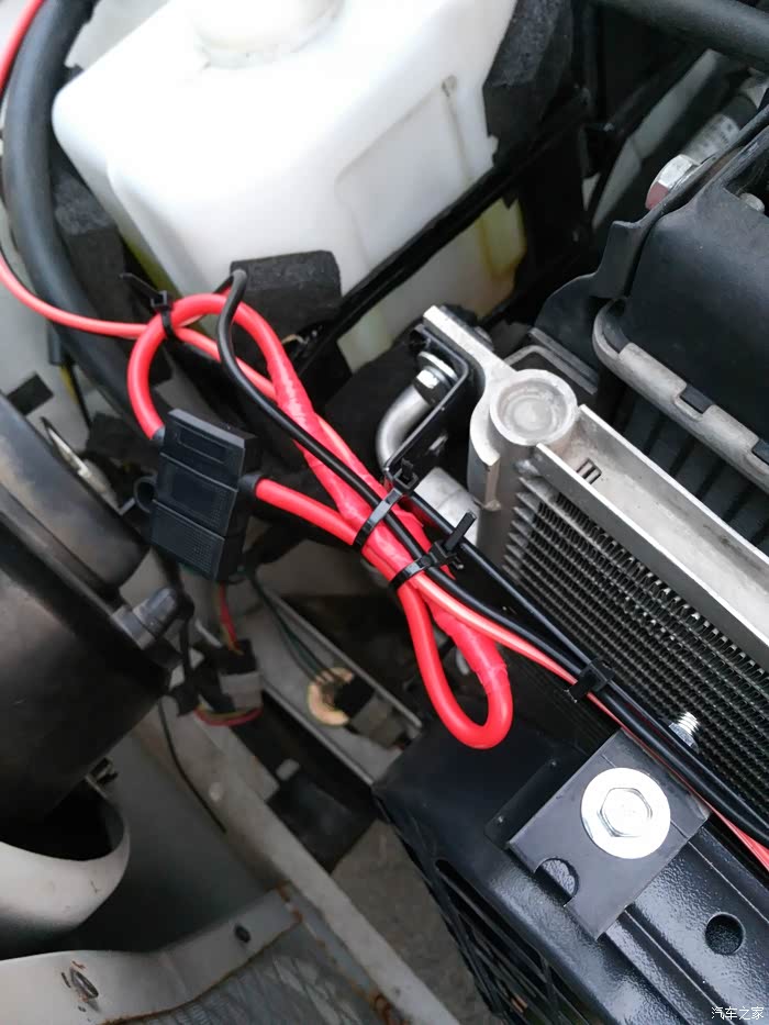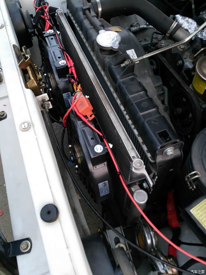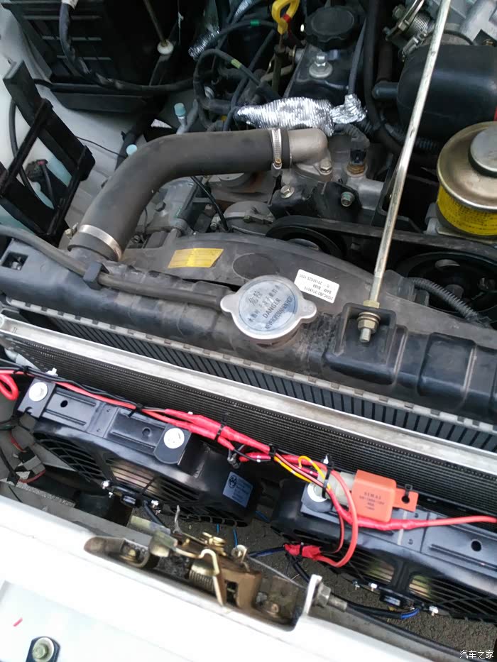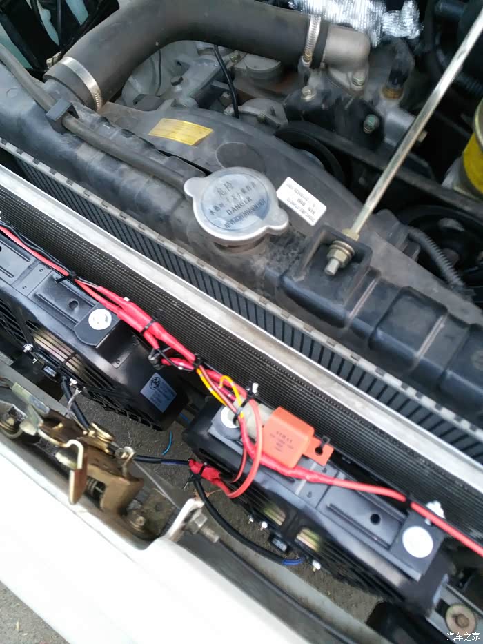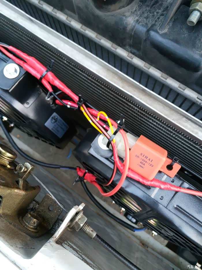 最后试了车,情况是这样,像往常一样,水温到了94,原车电子扇启动,同时,加装的2风扇也工作,正是想要的,不管何时,开空调,像往常一样,原车电子扇启动,同时2风扇也启动,也是想要的,总体还是很满意,就是声音太大,可能风扇质量问题,像飞机起飞,哈哈!动手很开心!