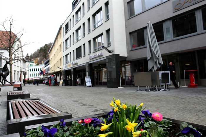 车停留在广场上,带队导游说我们已来到列支敦士登首都的市中心。几栋建筑,一条小街,袖珍之地,竟然是一个国家的首都而且是货真价实,令人称奇。街道两旁有美术展览馆、教堂、旅游局、邮票博物馆、酒店、商店等各式建筑。山上的瓦杜兹城堡是亲王的府第,丁点大的地方走走看看,行行摄摄,别有情趣。下面上图: