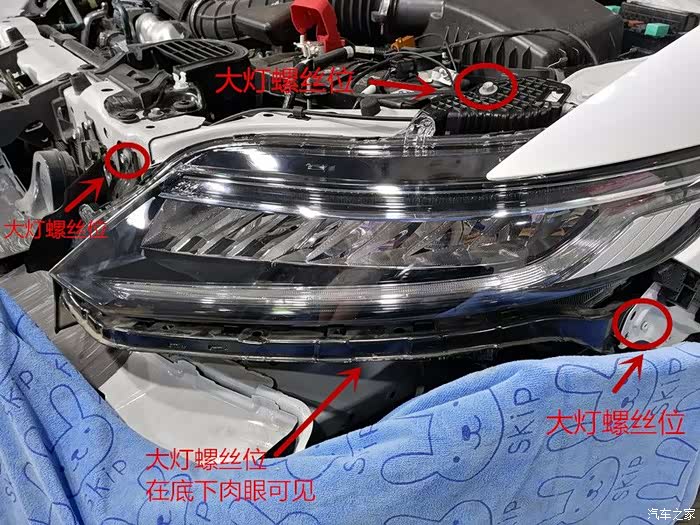 下面分享下,新款低配车型升级原厂高配LED大灯总成拆装过程。