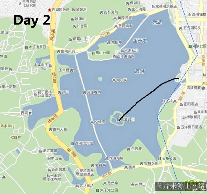 雷峰塔也被称为皇妃塔,去雷峰塔的主要原因是有足够广阔的视野全览西湖景色,雷峰塔位于浙江省会杭州市西湖风景区南岸,而我们下车的地方恰恰相反,在西湖的北岸,这个时候骑一台共享单车再好不过,相比起打车,骑单车速度不快,骑行路线可以是杨公堤,这样可以尽享西湖西面的景色。