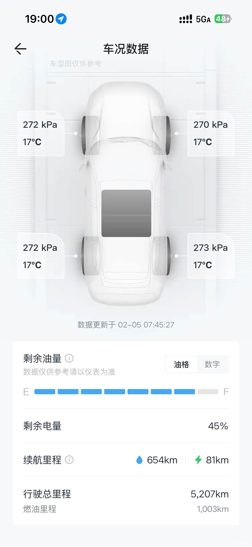 这次特意测了一下综合路况。跑了个小长途,混合着高速和国道,系统会根据路况智能切换电驱和油驱。最终表显油耗才2L/100km左右,配合一个大油箱,满油满电的综合续航里程非常可观,长途穿越心里特别有底,减少了很多补能焦虑。