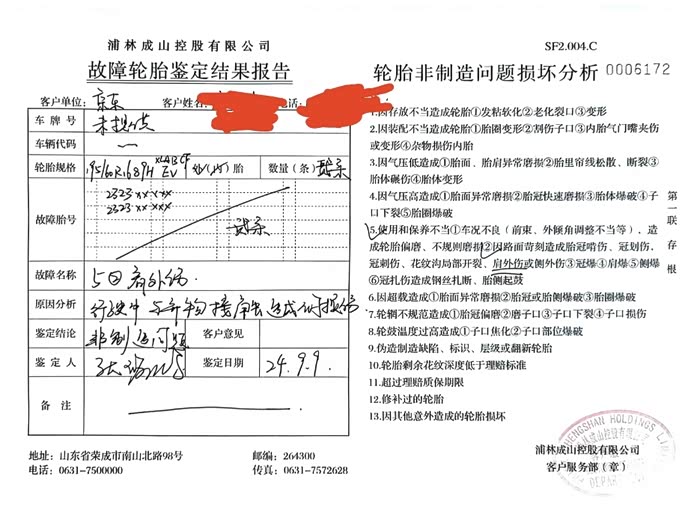 某东的浦林轮胎质量真的好差,轮胎才用了一年多2万多公里,竟然轮胎胎冠或者侧边都是细小划痕,图片厂家就鉴定出来,说我这个是因为个人使用问题造成的,分明就是强词夺理,我承认这两个轮胎是驱动轮,可能磨损会大,但是后轮怎么没有这个裂痕呢?申请售后,我不赞同他们的观点,还让我去找第三方检测,我是普通小老百姓,怎么可能找呢,就算可以找,也不能说不上班为了那个几百块钱不停地检测和投诉吧,你们说我走的路况不好,难道说我就前轮在地上行驶?我后轮抱在手上推着车子走的?这分明就是强词夺理,分明就是轮胎太软,质量太差,磨损太大,轮胎强度不够,造成的轮胎有裂痕损坏!