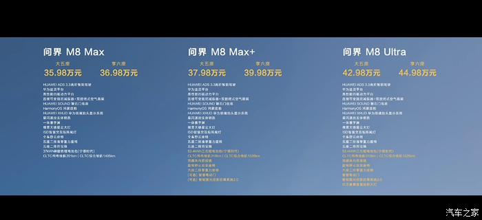 问界M8一共出了Max、Max+和Ultra三个版本,每个版本还有5座和6座可选,价格从35.98万到44.98万,实际选下来还是有点纠结的。