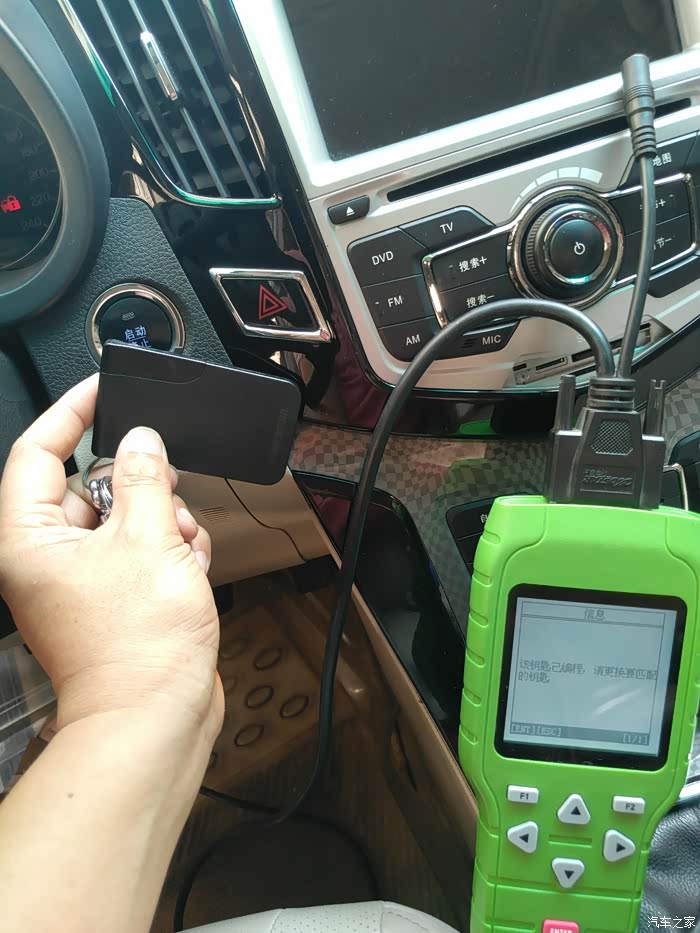 曾经在论坛上面见到其他车友买了手表钥匙,价格也不贵,自己也一直想配一把,原车钥匙是长条形的,携带并不方便,而且白色外壳很容易损坏,划伤,两年下来外壳已经旧得惨不忍睹,买手表钥匙的话,有两个好处,首先是自己没有手表,也一直想买个手表,总是掏手机看时间很不方便,其次,带一个手表比带汽车钥匙方便很多,所以最近在某宝上面搜索了一下,找了一家最便宜的卖比亚迪手表钥匙的,下手买了一个,价格399,比比亚迪原车手表钥匙便宜很多,同时需要付压金用卖家的设备进行匹配,设备免费用,需要押金。匹配有两个设备,一个是读取原车密钥并给新钥匙写入密钥的设备,另一个就是连接车子,用来给车子匹配钥匙的设备,自己最好准备3个手机,一个手机用来看卖家的匹配视频,另一个手机用来安装一个APP用,上车匹配用的,安装APP这个手机必须能上网,而且不能连接wifi,然后还有一个手机用来拍照,因为读取原车密钥信息的时候需要拍照记下来,密钥不能写错,写错钥匙就报废。刚拿到手表和设备的时候一脸懵逼,视频看了三遍才开始动手,整个过程不能有一点疏忽,一定要严格按照视频来,所以过程没有去拍照片,最终匹配成功后,感觉还是挺有成就感的,车子等于多了一把钥匙。由于白天要上班,晚上要带娃,我实际匹配的时候是等小孩睡着了,晚上十点多才去匹配,很多照片是晚上拍的,有色差。