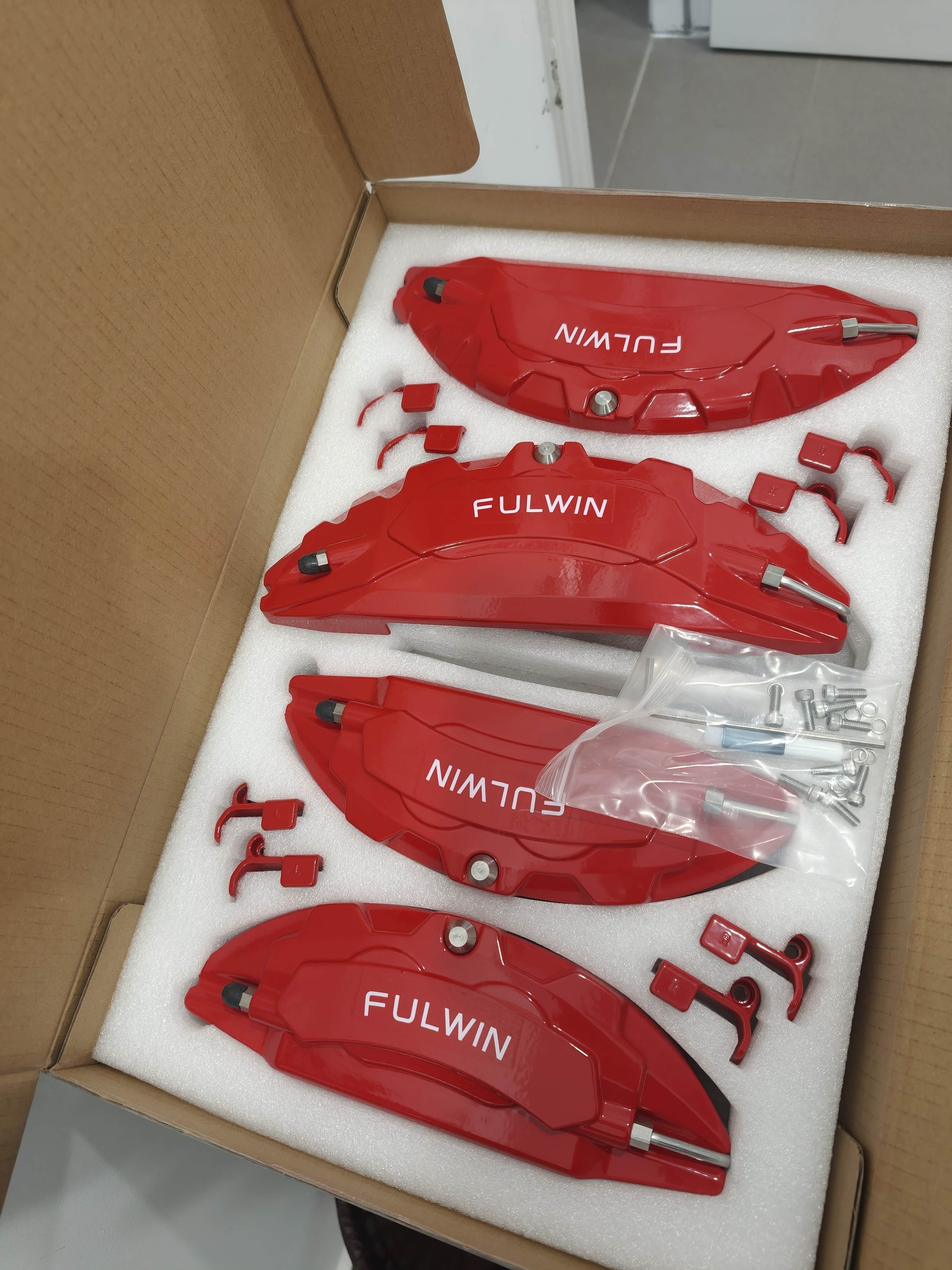 提风云A9L伯牙奢享版三月,行驶2100公里时收到厂家赠送的红色卡钳罩,立刻前往4S店完成安装。打开包装盒的瞬间就被惊艳到,烈焰红的卡钳罩印着“FULWIN”标识,搭配定制泡沫内衬和全套不锈钢配件,原厂做工的精致感拉满,和图片里的配件质感完全一致。
