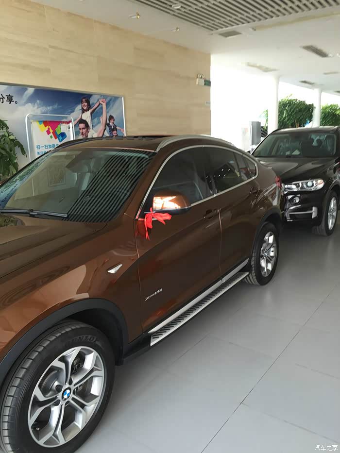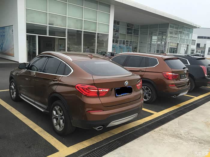 我之前是用现代索八的,老婆无意中的一句话让我有了换车的念头,什么话这里就不说了,反正大家主要是要看后面的事,实际上如果只是当交通工具看那个索八就很不错了,换车的主要目的是什么?我们大家把车的属性抛开更多的是为了面子,,毕竟从买的那天起就开始亏本,我又不是企业老板装太过了也不好,所以预算在60万内,于是乎就在网站找了好多车型来看,我一直喜欢X6的风骚外形,但花100多万太贵又觉得划不来,现在好了有一个锁水版X4,X3第一时间排除因为侧面不好看,实际上他和X4底盘一样实用性更强,但我就是不喜欢,还有GLC,我也试驾过发现我比较喜欢GLC的比较轻的助力开起来很舒服,可以说内饰配置空间完胜X4,但是加价3万太恶心,并且它停在GLE和ML的旁边显得特小,但我知道它和X4一样大,关键是X4停在5系3系一起就立刻高大上了,奥迪的Q5如果有新款毫不犹豫就是他,现款的前脸太老了,但价格实惠侧面外形太经典了八年后都不过时,卡迪拉克XT5的各方面都很好为什么也没选了,因为他太时尚了,本人在服装行业混的,我们有一句行话叫时尚翻过篇就是垃圾,经典往往是平凡,太时尚容易审美疲劳,又有人说了X4还不够另类,没办法就是喜欢,有钱就该任性是吧?上面所说的全是我的想法实际上决定性的一句话是老婆说的,已经花到5到60万了为什么不买奔驰宝马了,看来奔驰宝马在国民心中的地位是如此之高,什么也不说了X4吧,谈价搞定,上图:裸车46万。加了12800买了服务包,好像是8次常规保养和3个面的油漆,