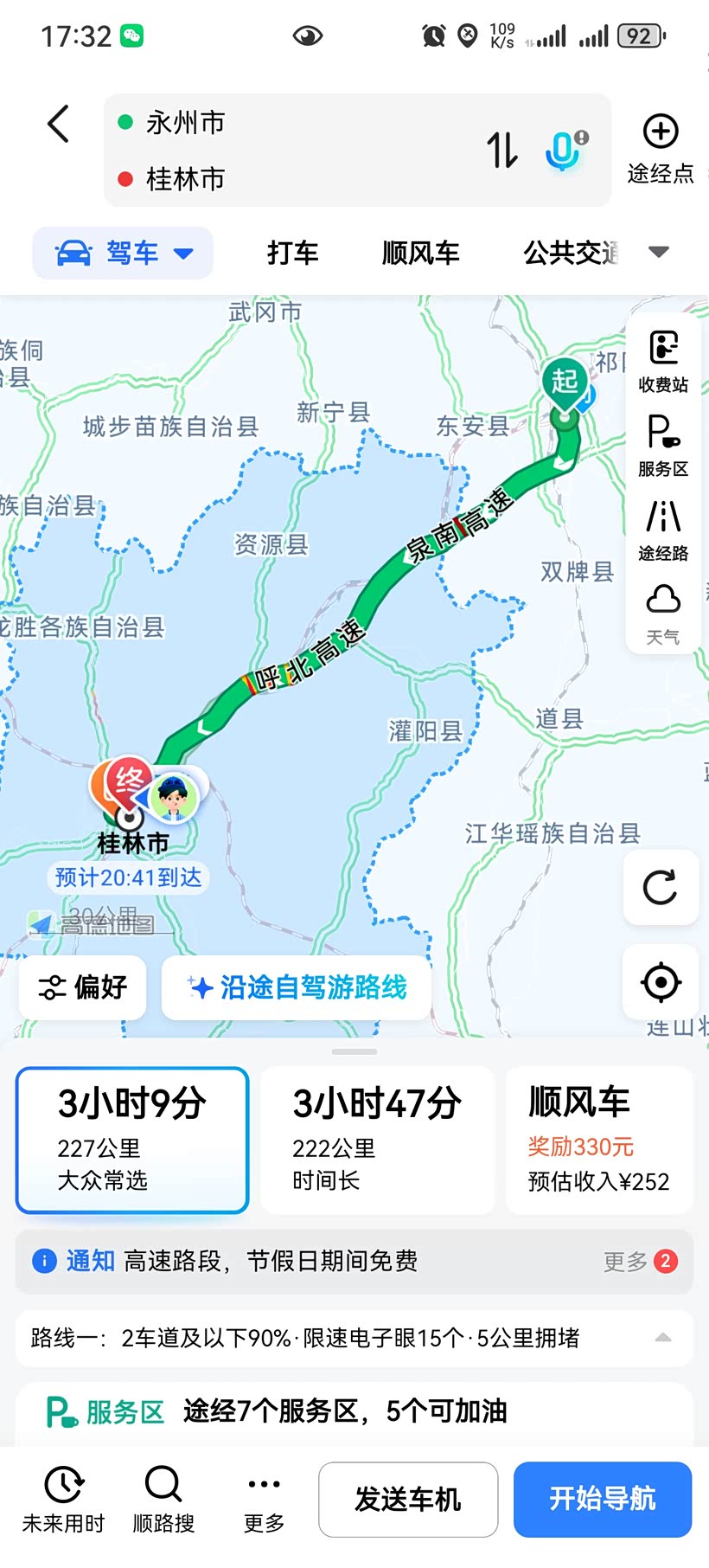 这次国庆长假,我果断选择了从永州自驾到桂林!毕竟“桂林山水甲天下”可不是白叫的,而且距离超友好——全程219公里,开车3小时左右就能到。一脚油门从湖南的日常切换到广西的仙境,这性价比谁不爱啊!