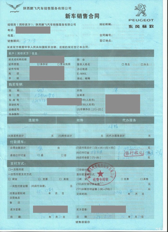 接下来几天试驾了其他的几款车,其中408的外形一下子就吸引了我,新408的前脸比老款的好看很多,试驾后觉得配置也很不错,自豪版本的什么配置基本都有了,电子手刹,双区恒温空调,多功能方向盘.....虽然座椅的调节很鸡肋,但是无所谓啦,毕竟鱼和熊掌不可兼得么,从试驾到还价,订车就用了两天,店里现车也不多,1.8自豪的更是只有一辆,(我现场考证了下,确实1.6t和1.8标配的多)