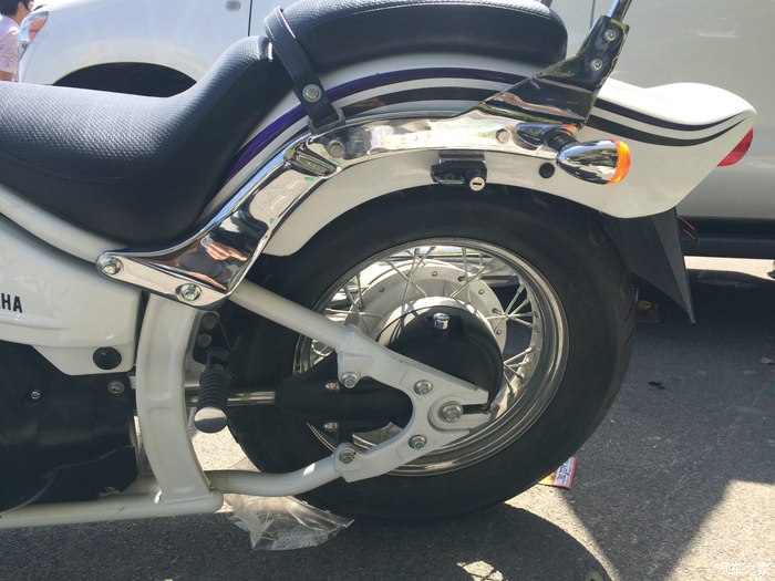 但是,在低速行驶时,感觉却是很不错,另外,由于车重心较低,同时车座高只有685MM,因此,脚的着地性非常好。马鞍形的座椅,不仅提高了脚的着地性,而且在乘坐的舒适方面也是一流的。由于座椅的幅面宽大,臀部可以完全坐在上面。另外,座椅后部呈斗状向上翘起,可以较好的支撑腰部,这一点确实是非常周到的考虑。脚踏板的位置设计恰到好处,膝盖的曲伸没有任何不自然的感觉,车把的位置和高低也是非常合适,容易操纵。对于身高为170MM左右的骑士来说,一点没有车把太靠前的局促感,倒是如果将车把向后移动5~10CM的话,反而会觉得不顺手。
