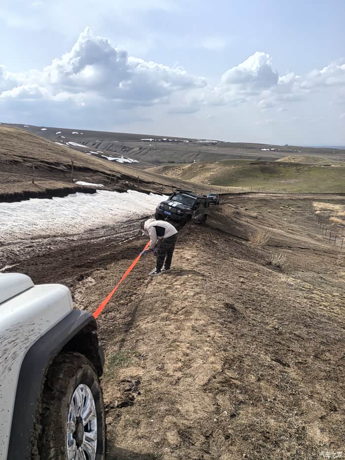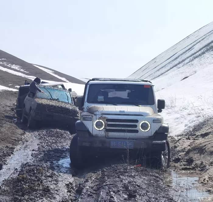 第一次救援队友,这是一个泥泞不堪的上坡,我和另一辆212车主顺利通过,掉头救援后面的队友。
