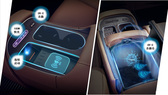 没带钥匙可以用指纹直接启动车辆,无线充、100w有限充电、UV-C杀菌仓,户外出行再也不懂担心孩子用品的卫生问题了。