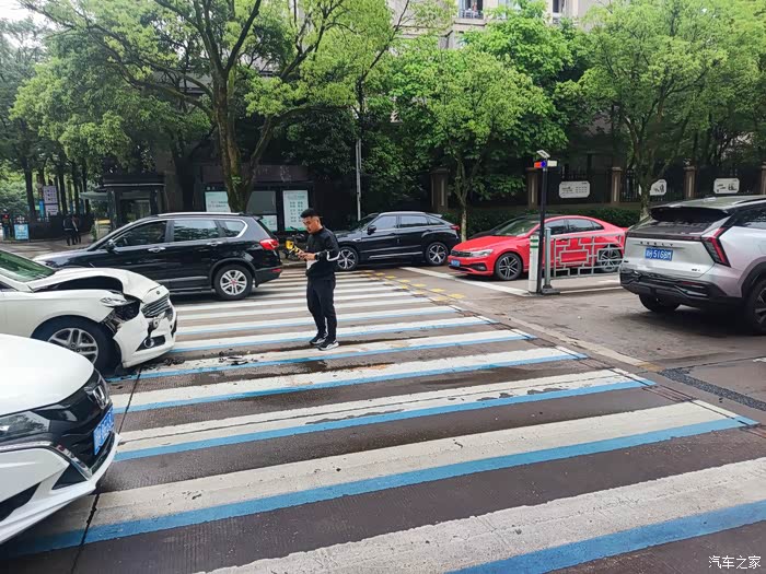 斑马线礼让行人,被后车追尾,博越L质量过的去