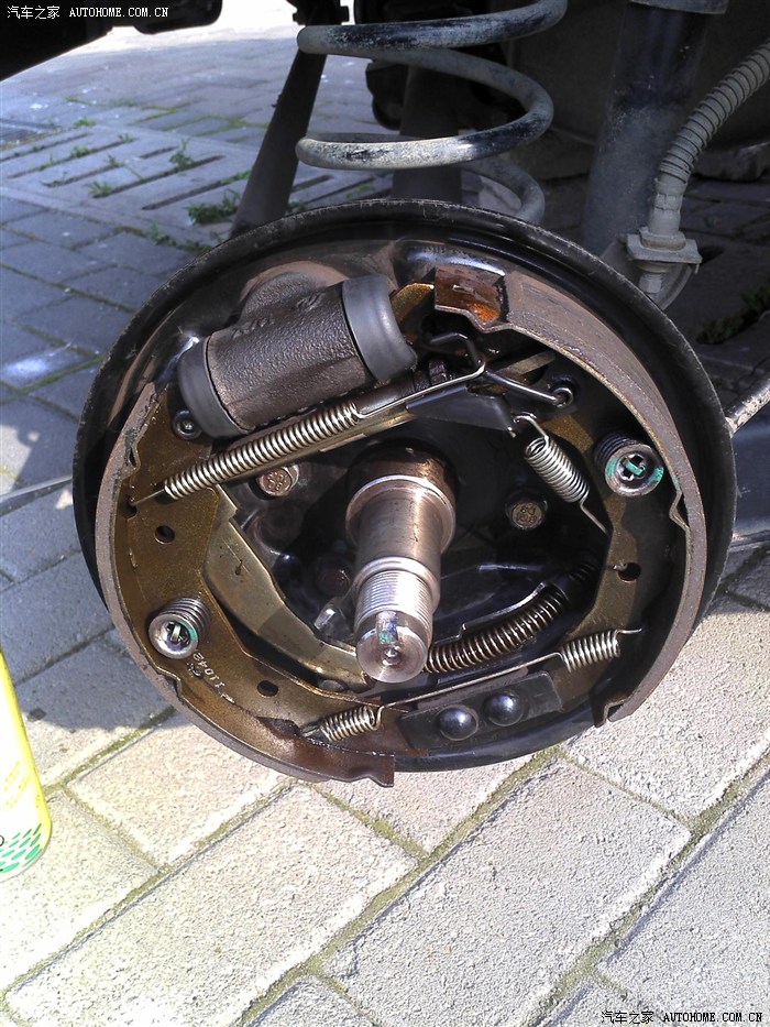 清理完毕,上油擦亮。上油要注意,不能太多,把重点的转动部位,弹簧,还有手刹拉线,好好滋润一下,刹车皮不要弄上油,影响制动效果! 我的手刹还没出现蹄片不能复位的情况,大家出现这种情况估计是弹簧锈的很厉害,或者鼓刹里面太脏了,大家拆开清理保养一下估计就没事了!
