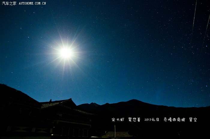 晚上12点开始拍星轨到2点,-6度,圆月,微风,不然要整成冰棍,走之前买的定时快门线扔车上没用,用以前买的无线遥控器一张一张来回渡步按出来的,更听到山头狼嚎