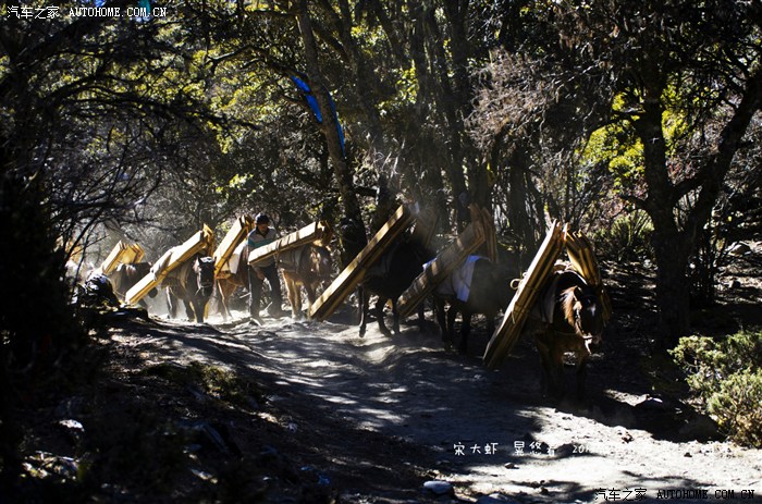 下午3点半巴登大叔带着我们骑马上玉龙西哑口,前面跟着贡嘎神狗,后面跟着小马驹