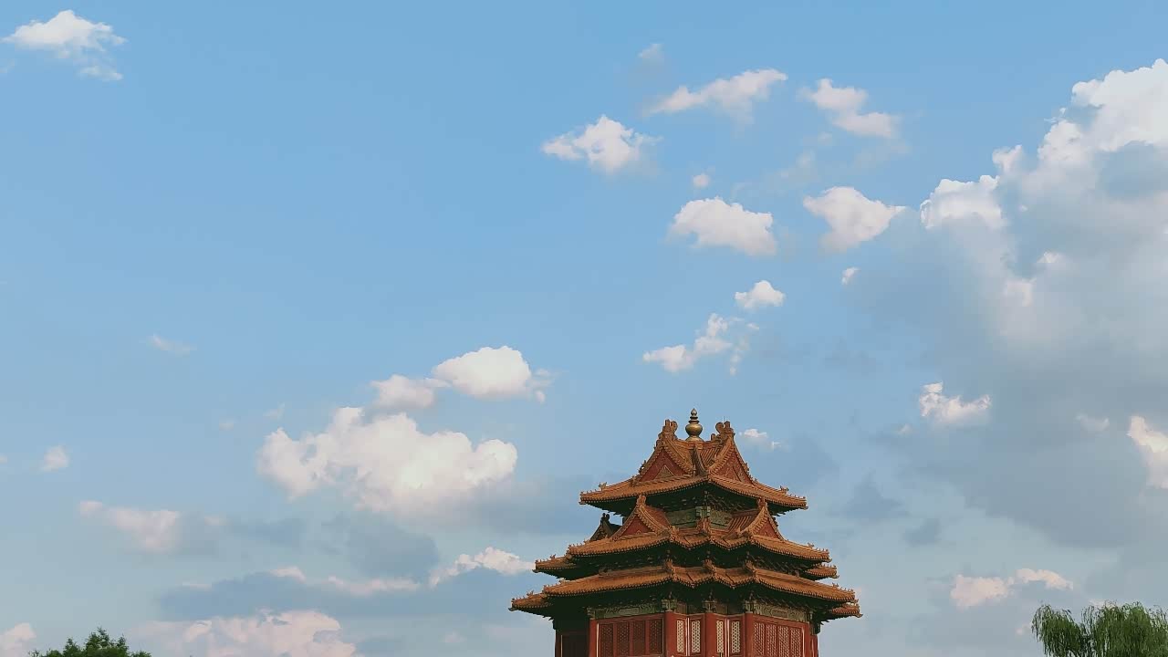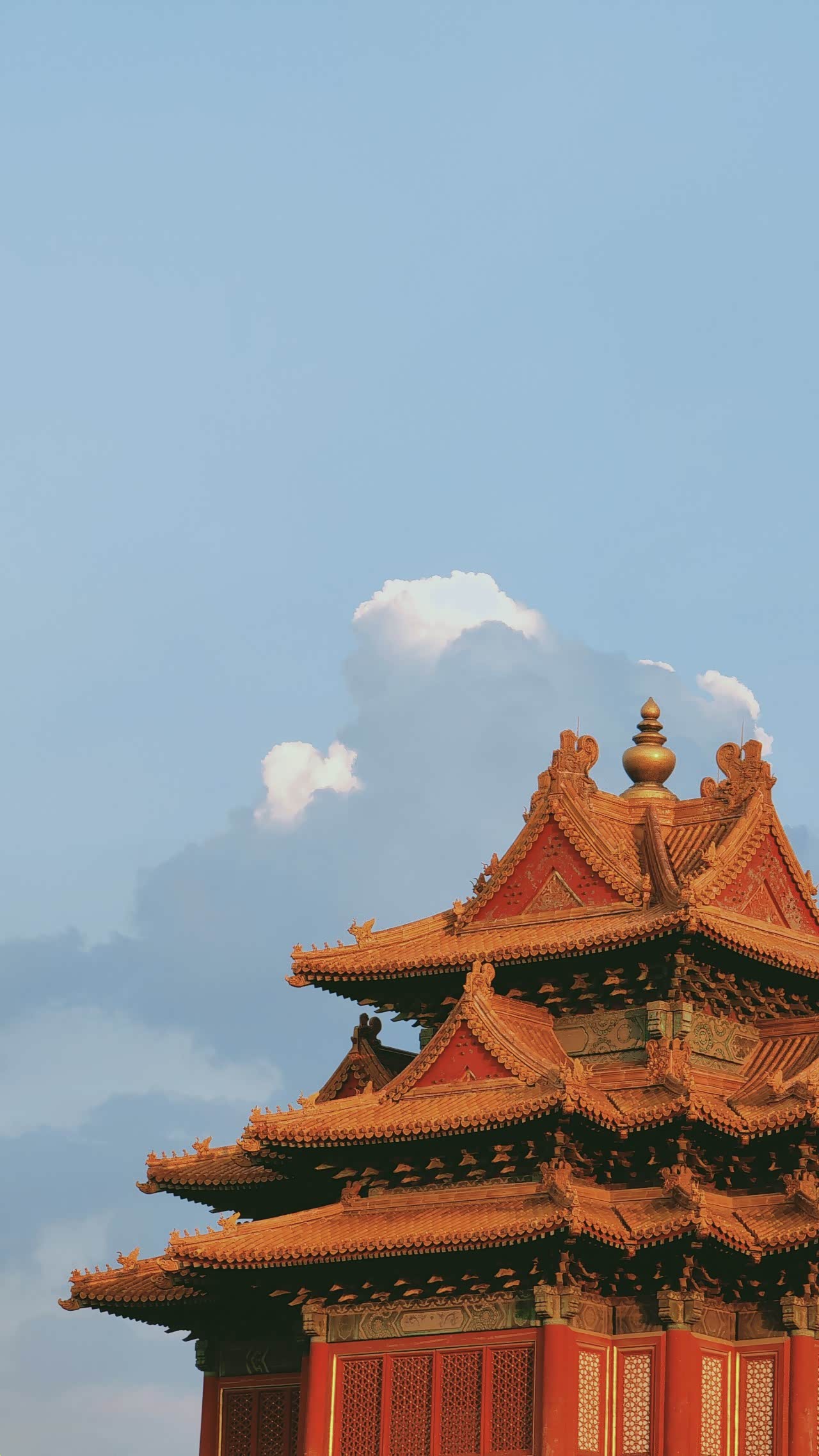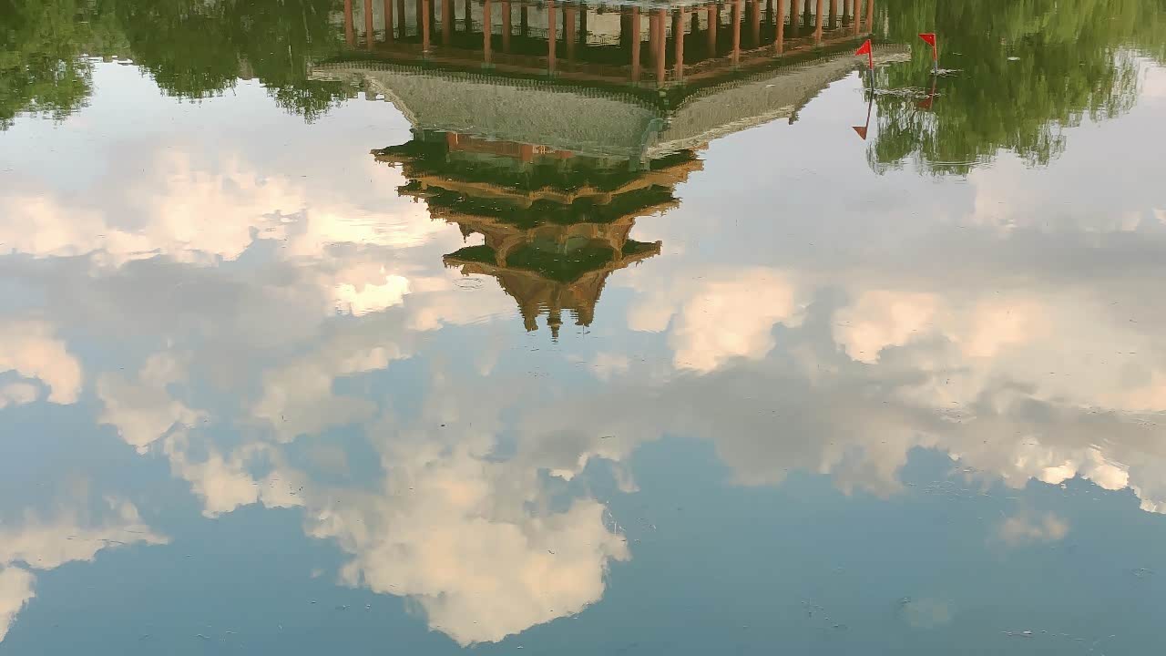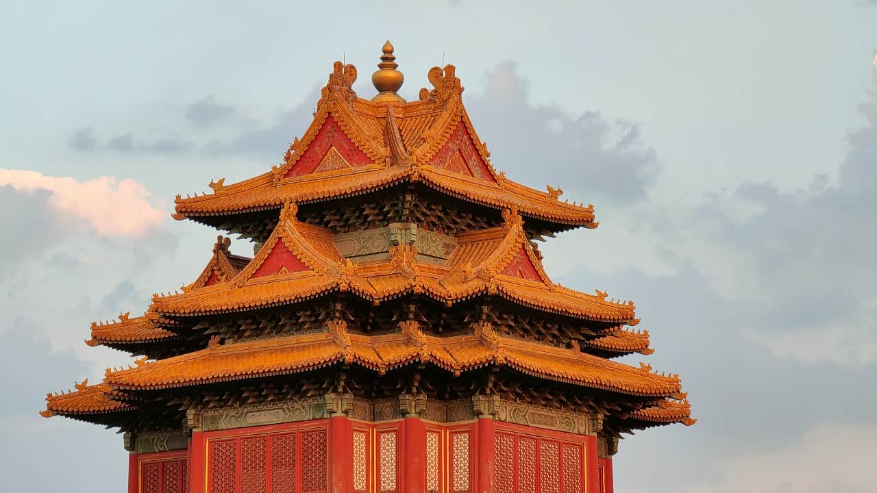倒映的楼阁,蔚蓝的天空,金黄色的宫殿,这就是北京故宫