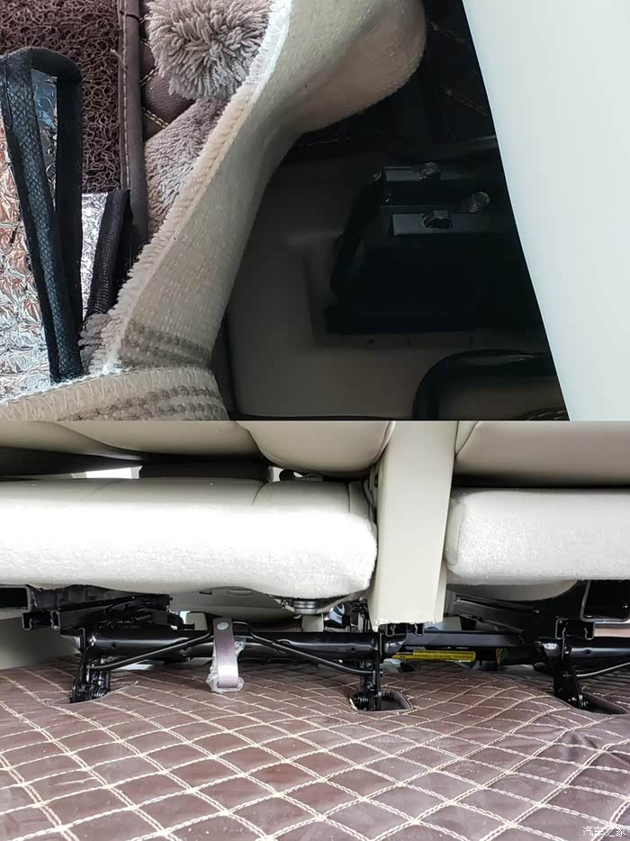 改装后第三排座椅空间反而变大了一下,因为利用地下的骨架往后延伸了一些,第三排座椅的乘坐空间还是没有变得,依旧不会很拘束。