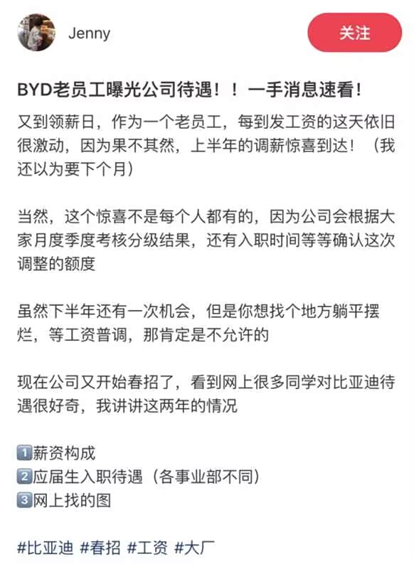 看到网上流传出了一个关于比亚迪的内部信,#比亚迪员工奖励机制公开#内容是关于薪资福利方面的,以前知道国内对新能源政策的补贴大,员工福利高,但看完之后说句实在话,深深的羡慕住了....
