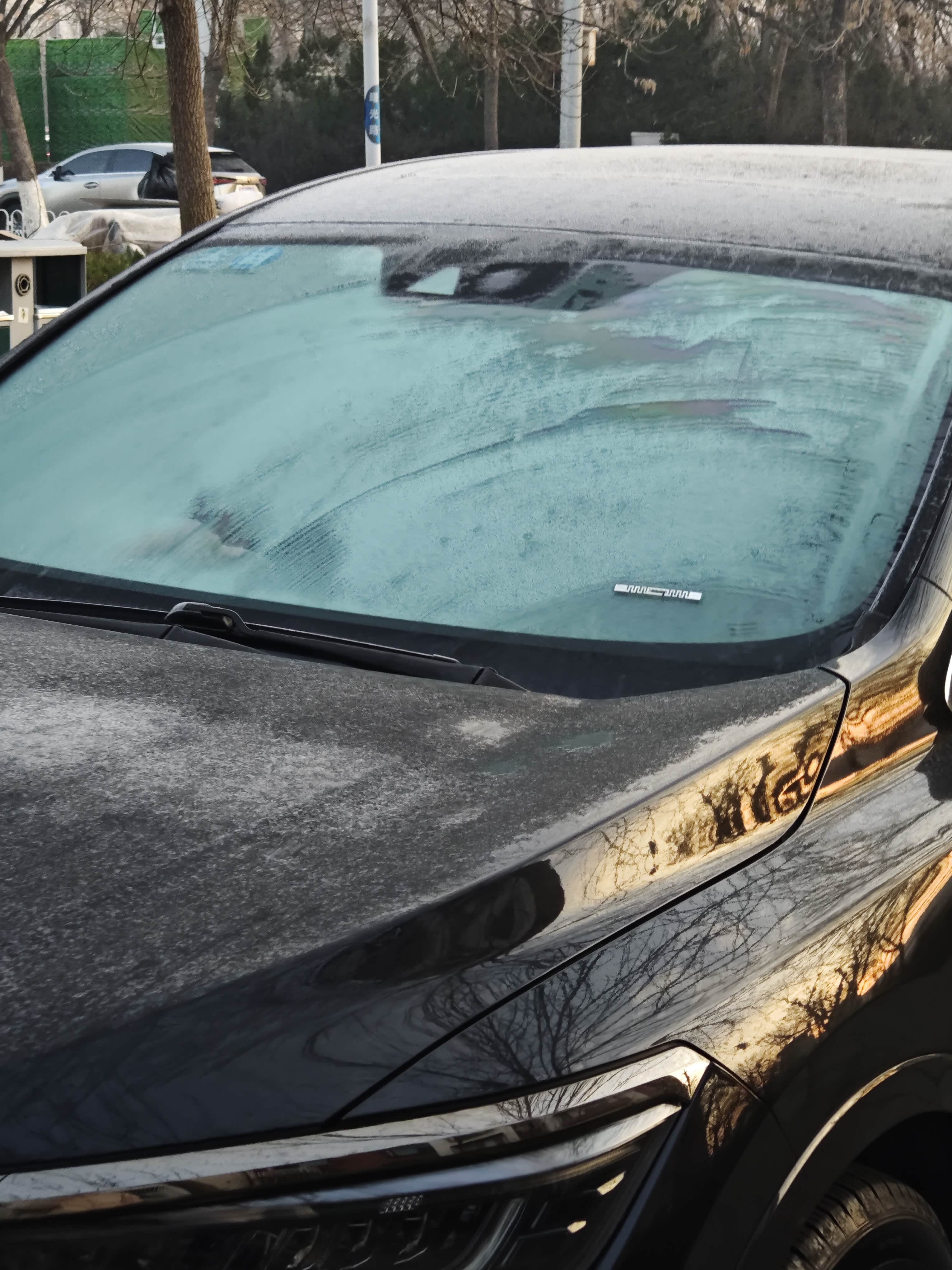 图五,图六是我步行去单位的路上,停在路两旁的车,车前挡风玻璃和车身顶部都布满了冰霜,其实这就是我不想开车的原因。因为家里只有一个地下车位,如果我和家属同时上班,我下班早,我开着电车回来之后,我就要停在地面,地面这时候是有免费的车位的。而等他回来的时候,地面的免费车位已满,进不来,就只能去下地库。第二天我们都要早起上班,我不想大早上起来去刮这些霜~而且电车如果在外面冻一宿,第二天的续航也会很差,虽然这倒是无所谓吧,主要还是都是都是冰霜,我烦ò?ó,所以不如油车放在地面,一起开电车出门。下班我想等他,就等到他下班跟他一起回来,不想等他,我就坐公交车自己回来,虽然坐公交车的时间有些长吧!