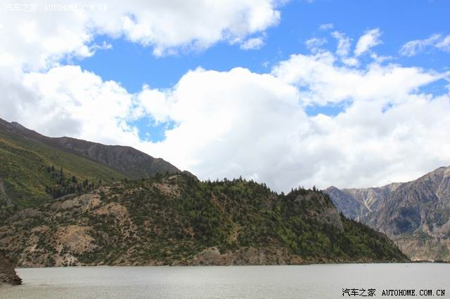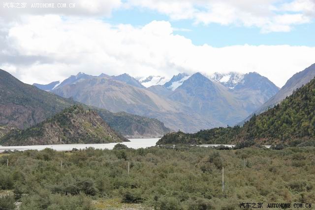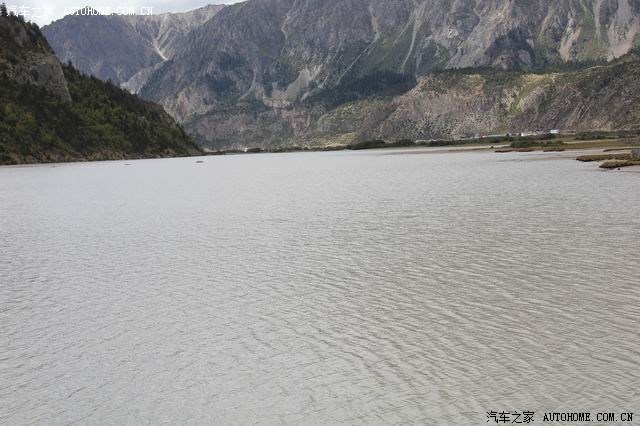 出门后见前方河滩上有许多游人在玩,我们也开车过去,见前方有一铁桥,跨过了然乌湖的一条支流后上山了,问了从里面出来的人说,此路可通往前方山下的两个藏寨;山路很窄,路也不好,我们艰难的冲上山,结果大吃一惊:此地基本上可看见大部份的然乌湖,此前在山下看见的湖水如泥浆色,但此时所见却美多了,不多说,上图(先上山下照的相片)。