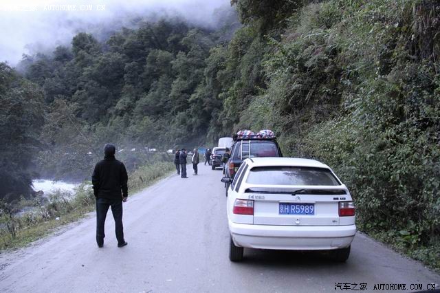经过近一个小时的行驶,我们的马自达终于到达了排龙(通麦天险的完结处),这里是门巴族自治乡,门巴族原是藏族分离出来的一支,后成为独立的一个民族;这里靠帕隆藏布江,有一个吊桥过河(据说原来要收费,这里有一个小屋,里面有一老一少两个门巴族人开一小卖部并收进峡谷费用,但现在不收了),沿峡谷对面的小路据说可到雅鲁藏布大峡谷,但因塌方,现在不能到达了;帕隆藏布江水流湍急,江中不知几许深,甚是吓人;但是运气不好,前面堵车,据说是有一辆油罐车出了车祸,遇见一个北京的富康车,也是一个人进藏,具其说是为其老板打前站的。