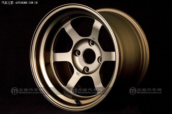 轮圈尺寸只有14、15和17、18寸可以选择,14、15寸的轮圈PCD值为4H100,4H114.3;17、18寸的PCD值为5H100和5H114.3,重量方面,18X9.5J的TE37轮圈重量为8.34kg。另外,需要提醒的是,以后大家不要看到条幅的“红章”就喊“TE37”,其实真正的TE37款是附件没有配以红色贴标(只有RAYS和VOLK贴标),而且只有一种颜色——青铜色。