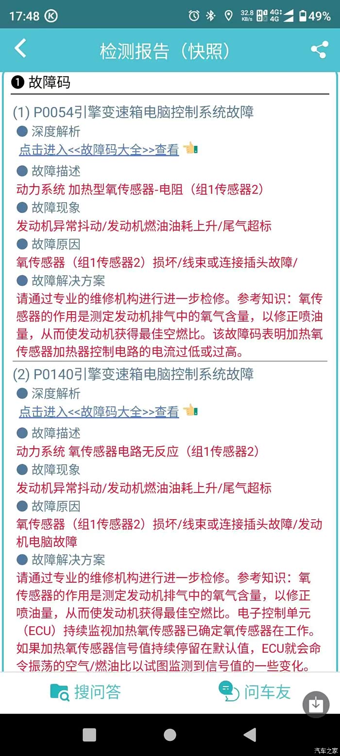 后氧传感器换下来的状态是不是不好了?报故障码