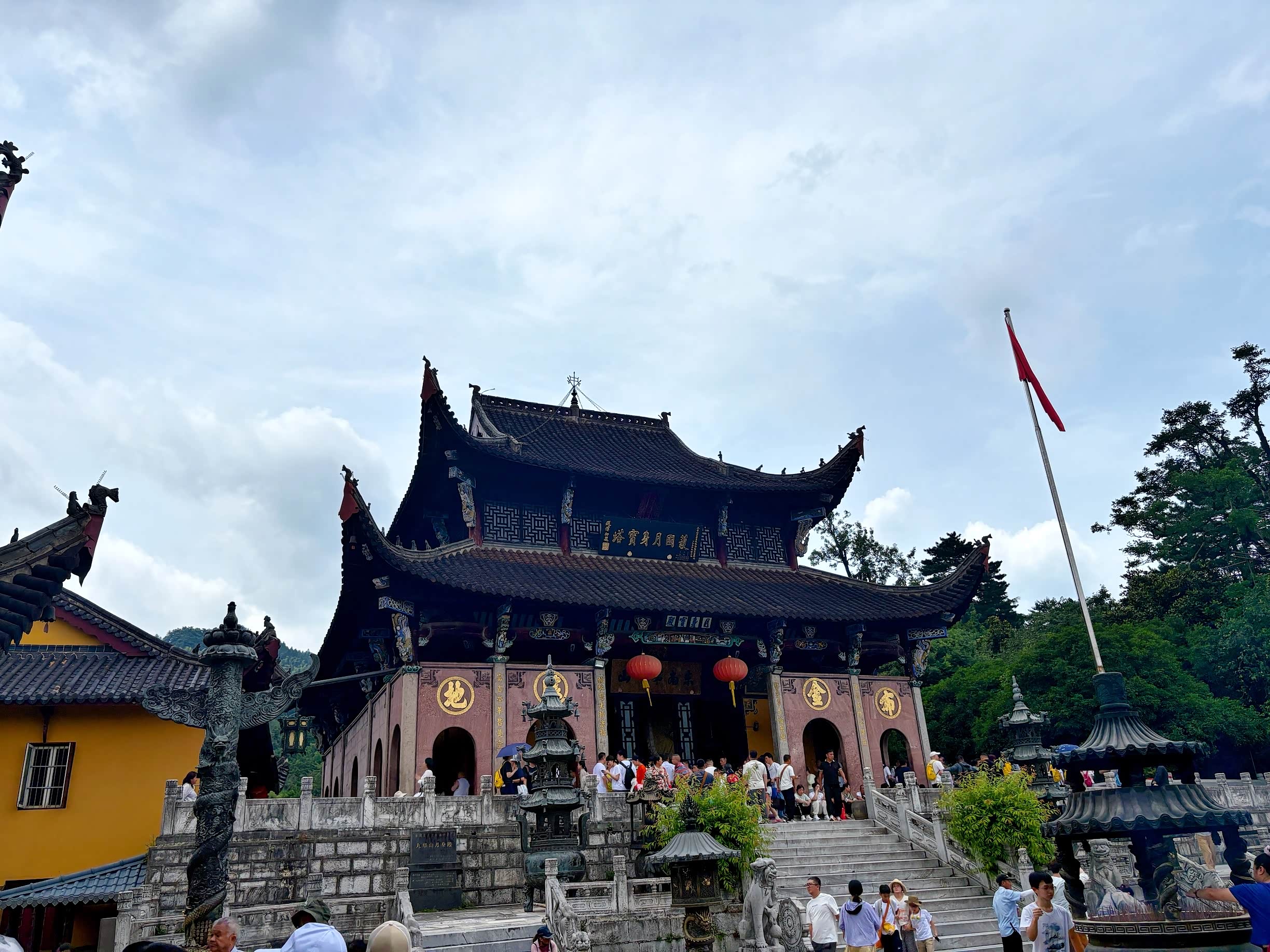 九华山进寺烧香有说拜九座寺,因为在佛教中,九为至尊,所以我就沿着九华街往前,先是拜了旃檀林的几座寺,这次挑战下体力,去了九华山著名的寺院月身宝殿。