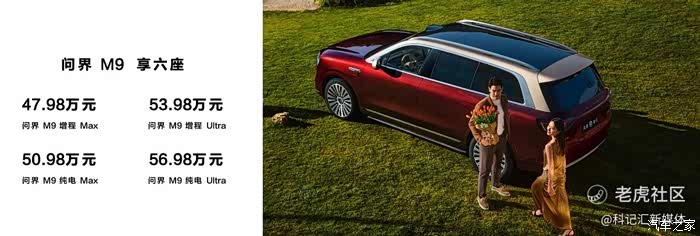 问界M9建议零售价如下:问界M9增程Max五座版46.98万元起、问界M9增程Ultra五座版51.98万元起、问界M9纯电Ultra五座版54.98万元起。问界M9增程Max六座版47.98万元起、问界M9增程Ultra六座版53.98万元起、问界M9纯电Max六座版50.98万元起、问界M9纯电Ultra六座版56.98万元起。